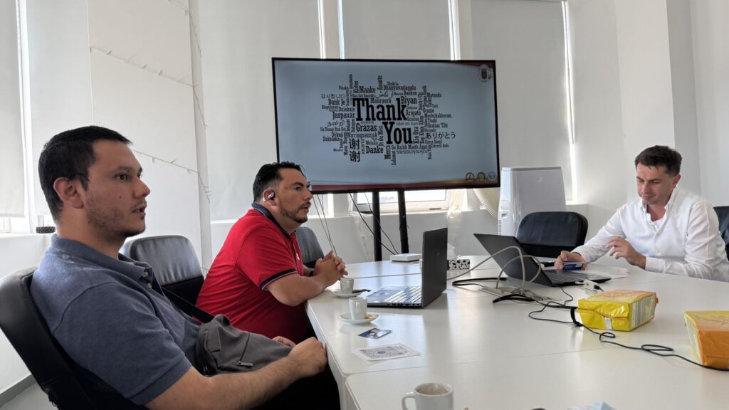 The visit was attended by Arcadie Sobetkii, Physicist and Scientific Director of MGM STAR CONSTRUCT SRL, Dr.Eng. Mohammed Alqasim Alsabti, and Dr.Eng. Alaa Abou Harab, together with an academic delegation from the University of Pamplona, Colombia, reinforcing the strong link between industry, applied research, and international academia.