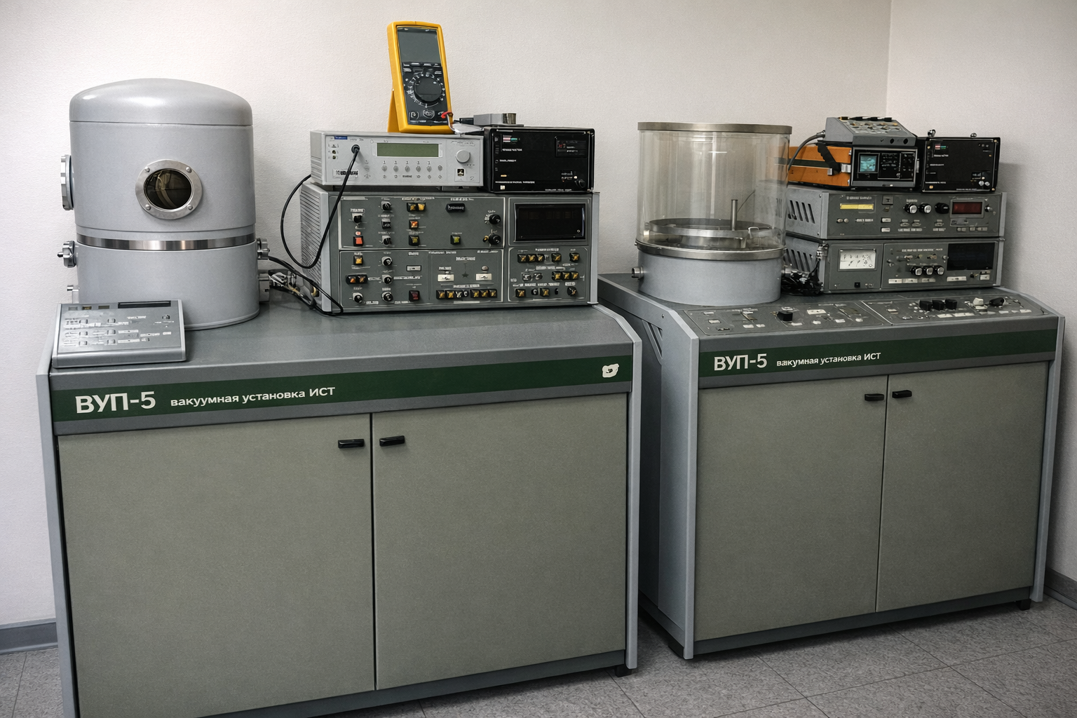 VU-2M-S, BAS-450-PM Balzers, Z-550-S Leybold, MAGNETRON – DC, RF and HiPIMS sputtering